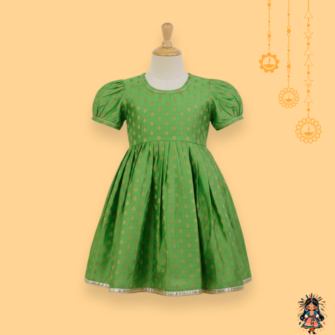 Celebrate the joy of tradition with this beautifully coordinated Parrot Green Sibling Set from KanyaKala.